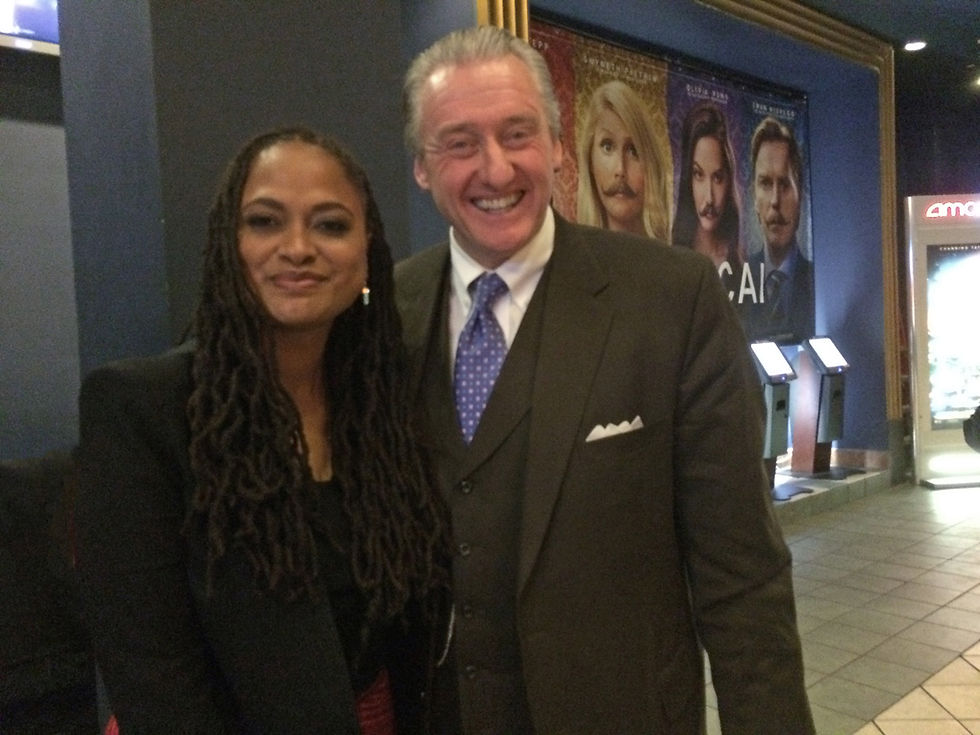 After a crazy series of cab rides, multiple flights, little sleep and the coordination of their tuxedos being delivered to the hotel, David and his Communications Officer, Cameron Spann, found themselves in a limo heading to the Academy Awards. Shortly thereafter, while experiencing the almost out-of-body experience of walking the red carpet, David’s phone began to ring. It was Melanie from Fox Searchlight. “Steve wants to know where you are!” she exclaimed. David and Cam made their way over to a separate area of the red carpet dedicated for Academy Award nominees. Upon arrival, the British-born Steve McQueen proclaimed, “Man, can I give you a hug?!” After brief comments between the two of them, David offered him one of the red wristbands as a token of friendship and good luck charm for the ceremony.